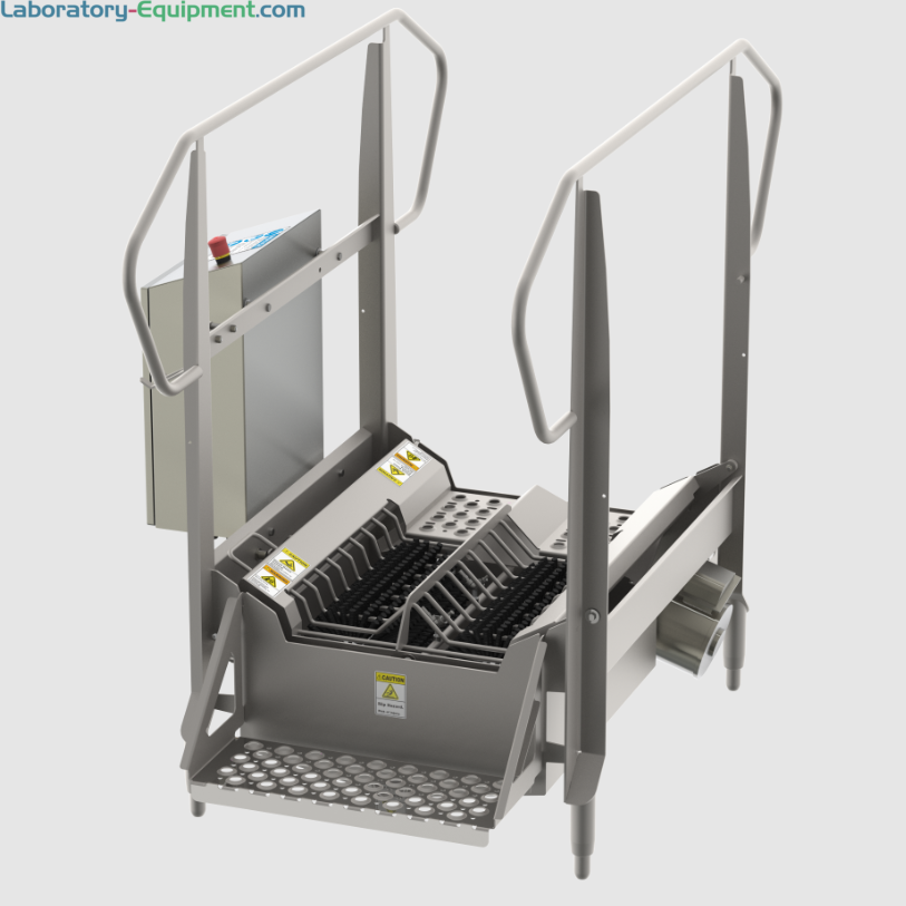 Stainless steel BSX900 Sole Boot Scrubber with a bi-direction design and a central emergency stop enables users to enter and exit the unit from either side