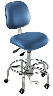 • Dauphin Blue Cleanroom Chair With Fluid Motion Controls And Fixed Height Foot Ring Cleanroom-Compliant Chairs