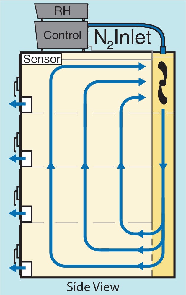 - Dilution fans quickly and efficiently mix nitrogen through cabinet to reduce N2 consumption
