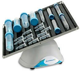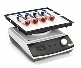 Unit includes three rotisseries for mixing different vial sizes; adjustable speed and angle can be configured for gentle or vigorous mixing applications