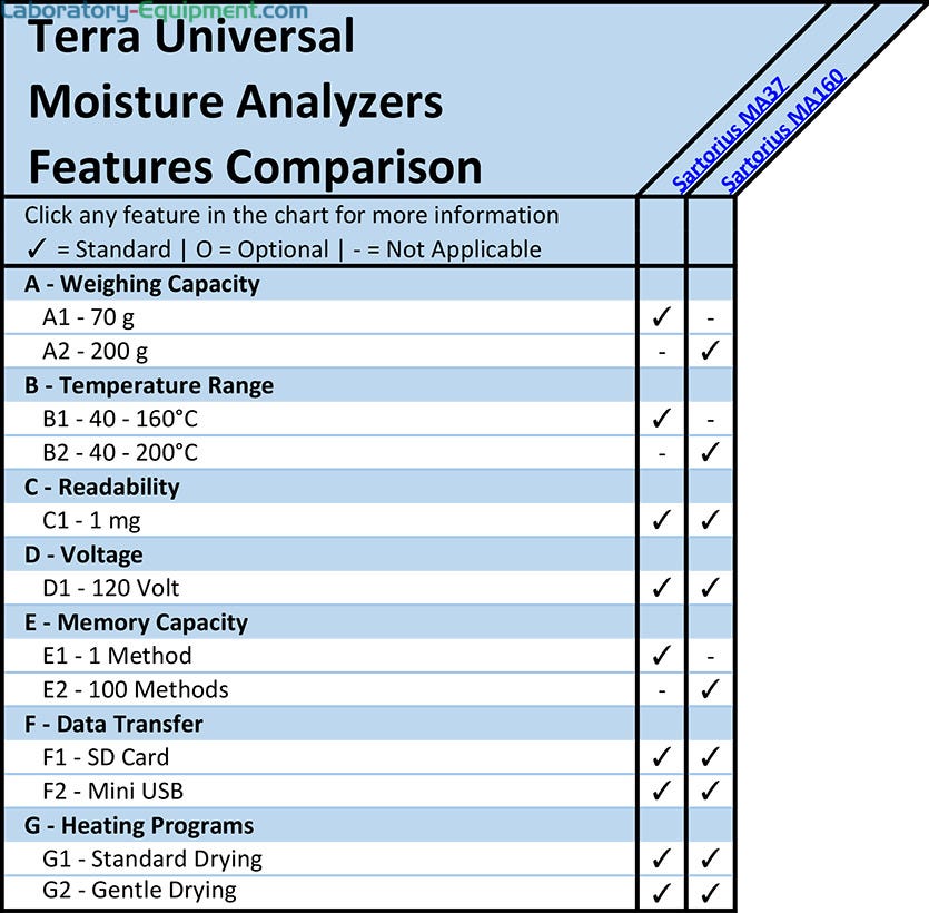 MA160 IR Moisture Analyzer streamlines the work process by allowing users to generate up to 100 new parameters in 3-easy- steps: interview session, method test cycle and release of new method. Stores up to 1000 results