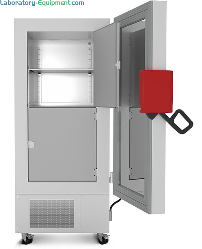 ULT freezer provides reliable temperature control with V-Drive cooling that adapts to door openings for rapid recovery. Features 5" user interface, Energy Star certification, and universal voltage.