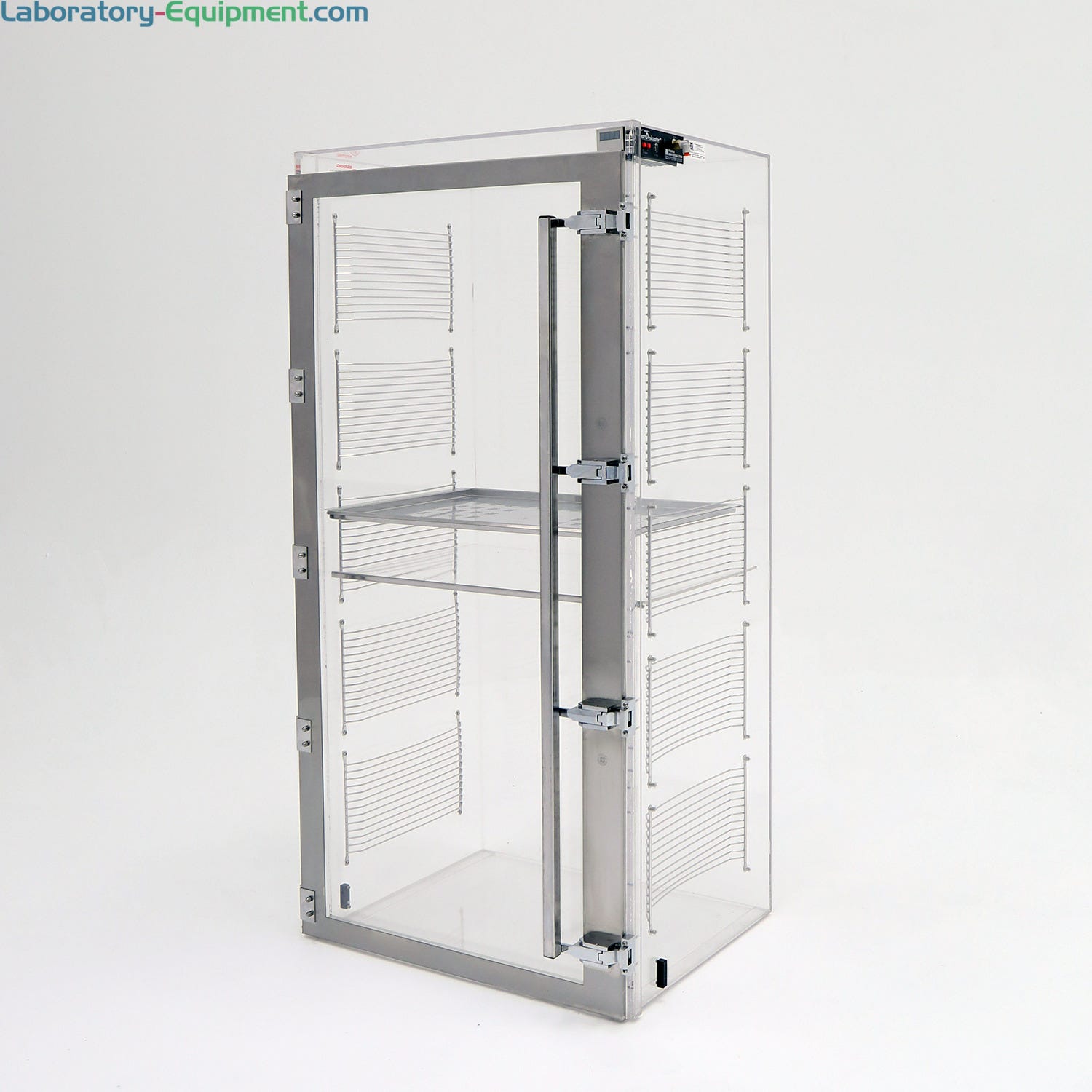 - Isolated chambers: The Adjust-A-Shelf desiccator cabinet is compartmentalized into isolated chambers to improve moisture control and recovery. The multiple air spaces are independent and thus RH in one chamber is unaffected by access to adjacent chambers.