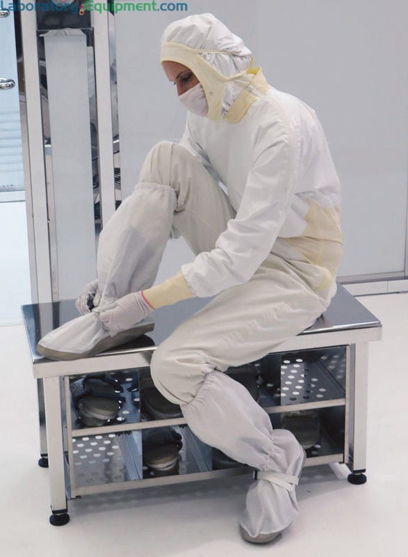 Gowning Platforms feature a clearly demarcated "no step" area where coverall may touch (shown with optional CleanLean Rail) | 9605-49 displayedGowning PlatformsGowning Platforms feature a clearly demarcated "no step" area where coverall may touch (shown with optional CleanLean Rail).