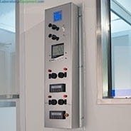 Cleanroom control panel with digital differential pressure gauges, thermo-hygrometer, and alarm systemCleanroom Control PanelCleanroom Control Panels are typically mounted at the main entry of the cleanroom (custom model shown with Digihelic® room pressure gauges and thermo-hygrometers).