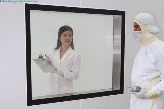 Shown: 47" x 36" BioSafe powder-coated cleanroom window flush-mounted in a BioSafe Cleanroom with FRP finish | 6603-26-1202 displayedBioSafe Frameless Single Tempered-Glass WindowFrameless design is as stylish as it is clean! Shown: 47" x 36" BioSafe powder-coated cleanroom window flush-mounted in a BioSafe Cleanroom with FRP finish.