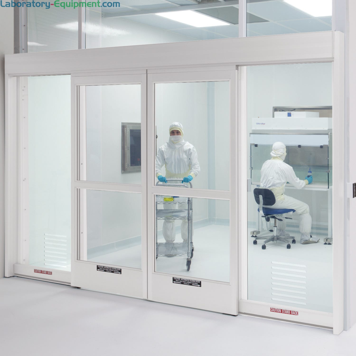 Automatic sliding doors provide cleanroom-compliant operation for use in research, healthcare and educational labsPowder Coated Automatic Sliding Cleanroom DoorAutomatic sliding doors, available in single- or double-door designs, provide cleanroom-compliant operation for use in research, healthcare and educational labs (bi-parting double door model shown).