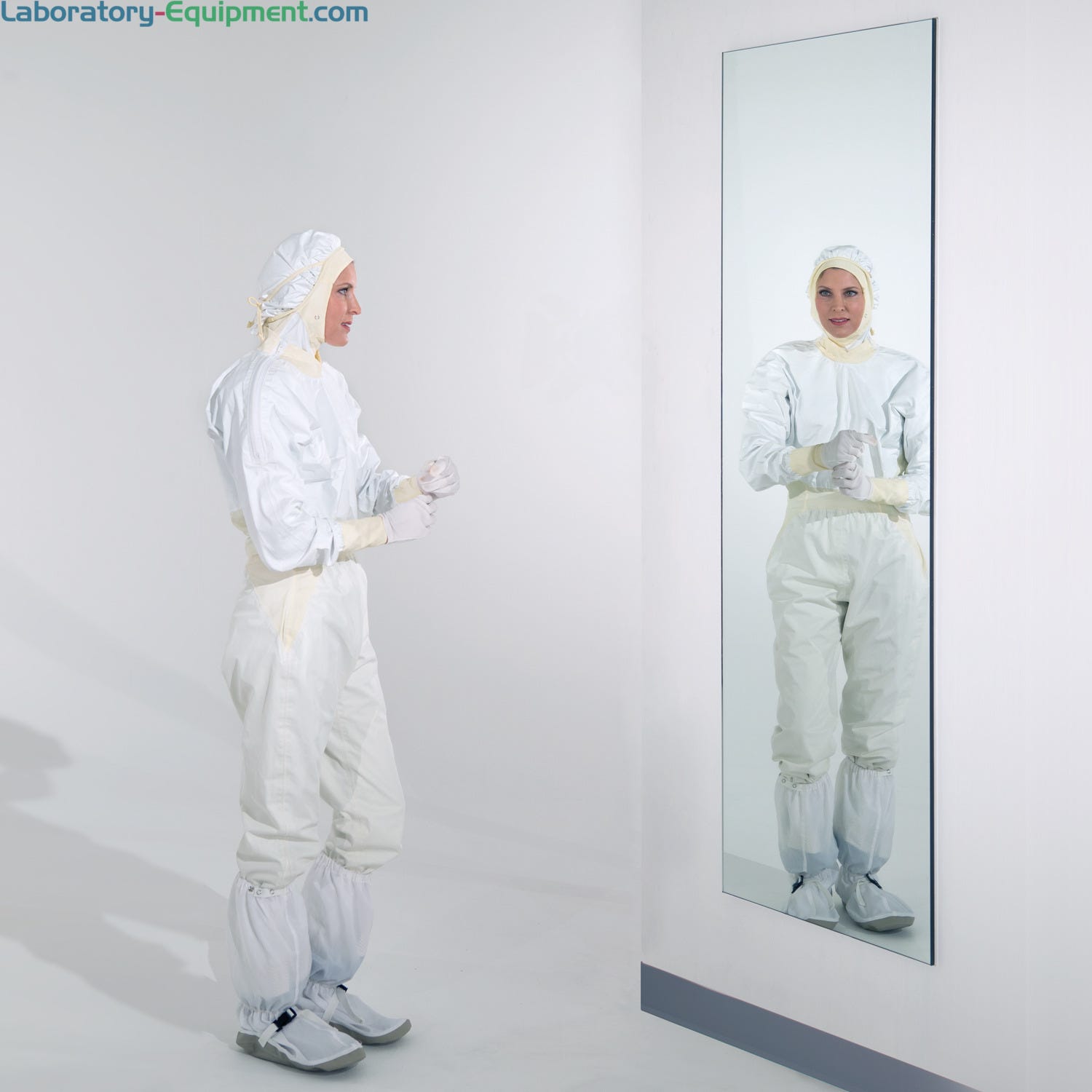 Cleanroom Mirror Provides a Visual Self-Check to Enhance Compliance with Gowning Protocol | 5252-59B displayedFrameless Gowning Room MirrorFrameless wall-mount full-length mirror mounts tight against cleanroom wall to eliminate particle and germ accumulation