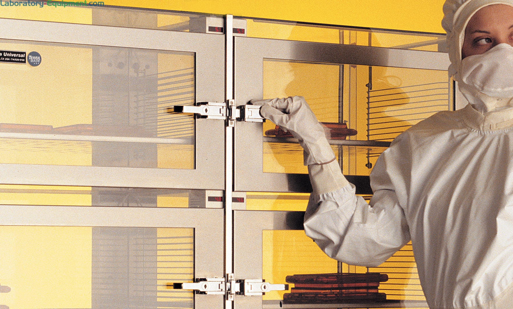 - Desiccator cabinet with automatic, multi-chamber humidity control, down to 0% RH