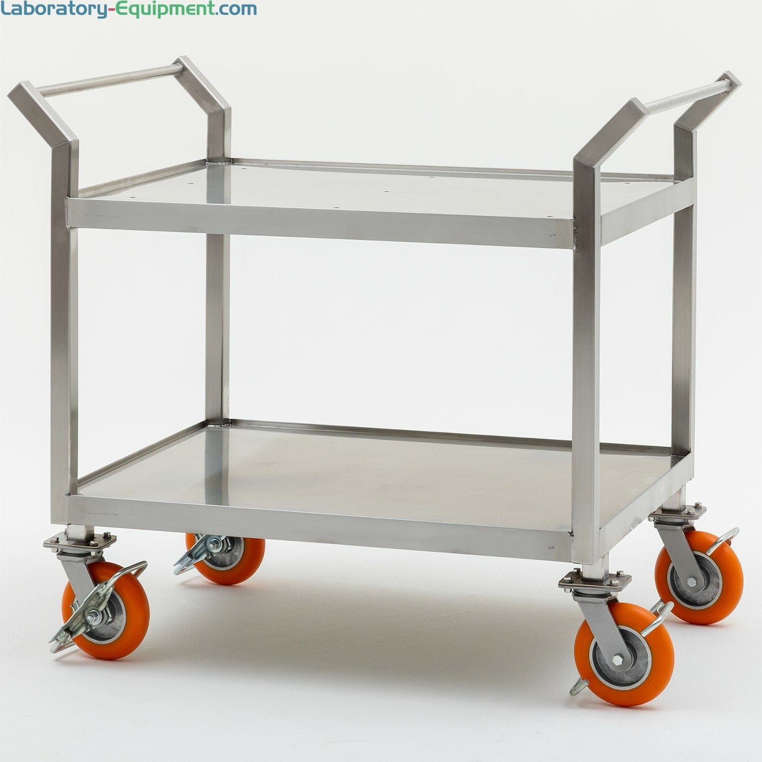 - Terra’s ultra-clean stainless steel cart offers multilevel transport with different top and bottom shelves: